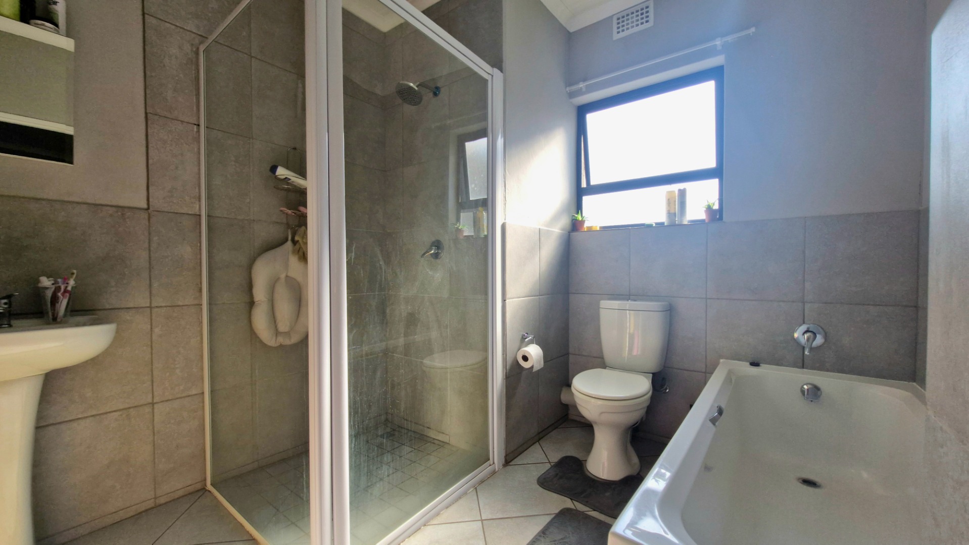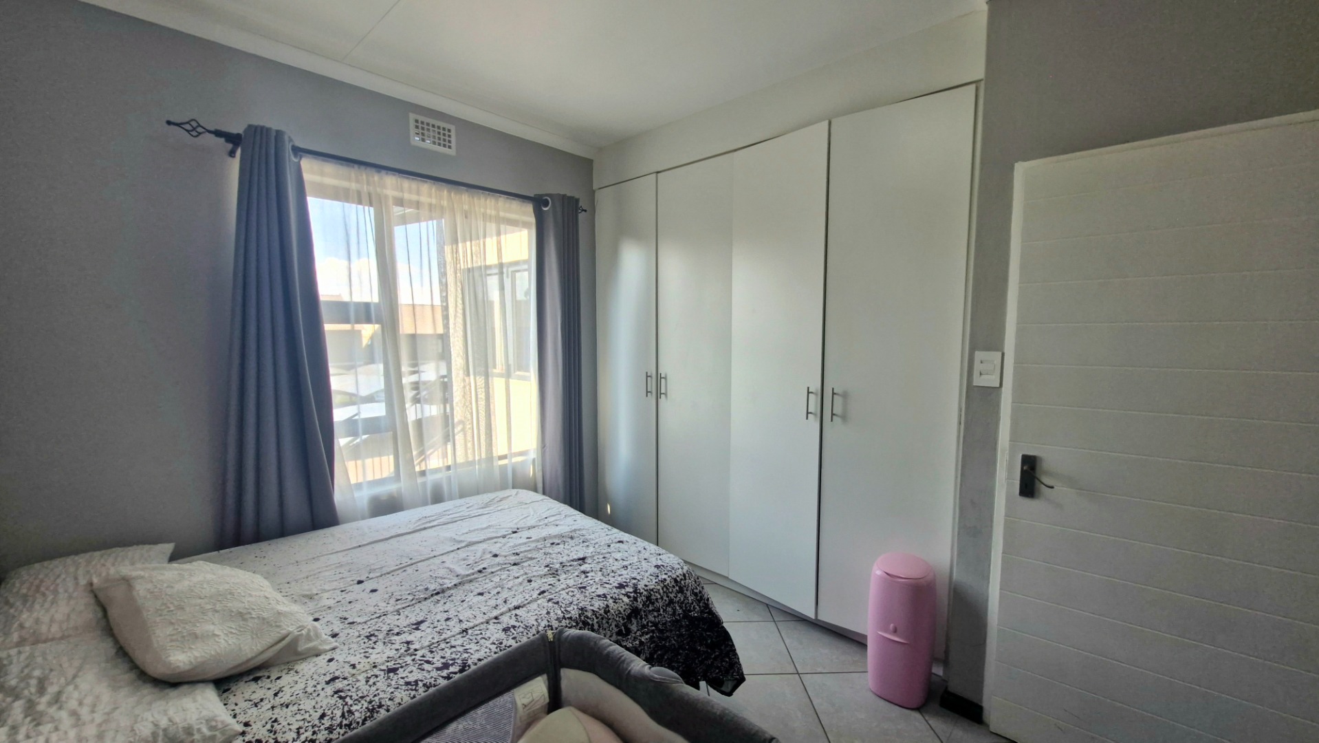 Featuring three spacious bedrooms, all with built-in cupboards, and two modern bathrooms, this home is ideal for professionals, couples, or small families. The open-plan lounge, dining area, and kitchen create a seamless flow, with the kitchen equipped with plumbing for both a washing machine and dishwasher.