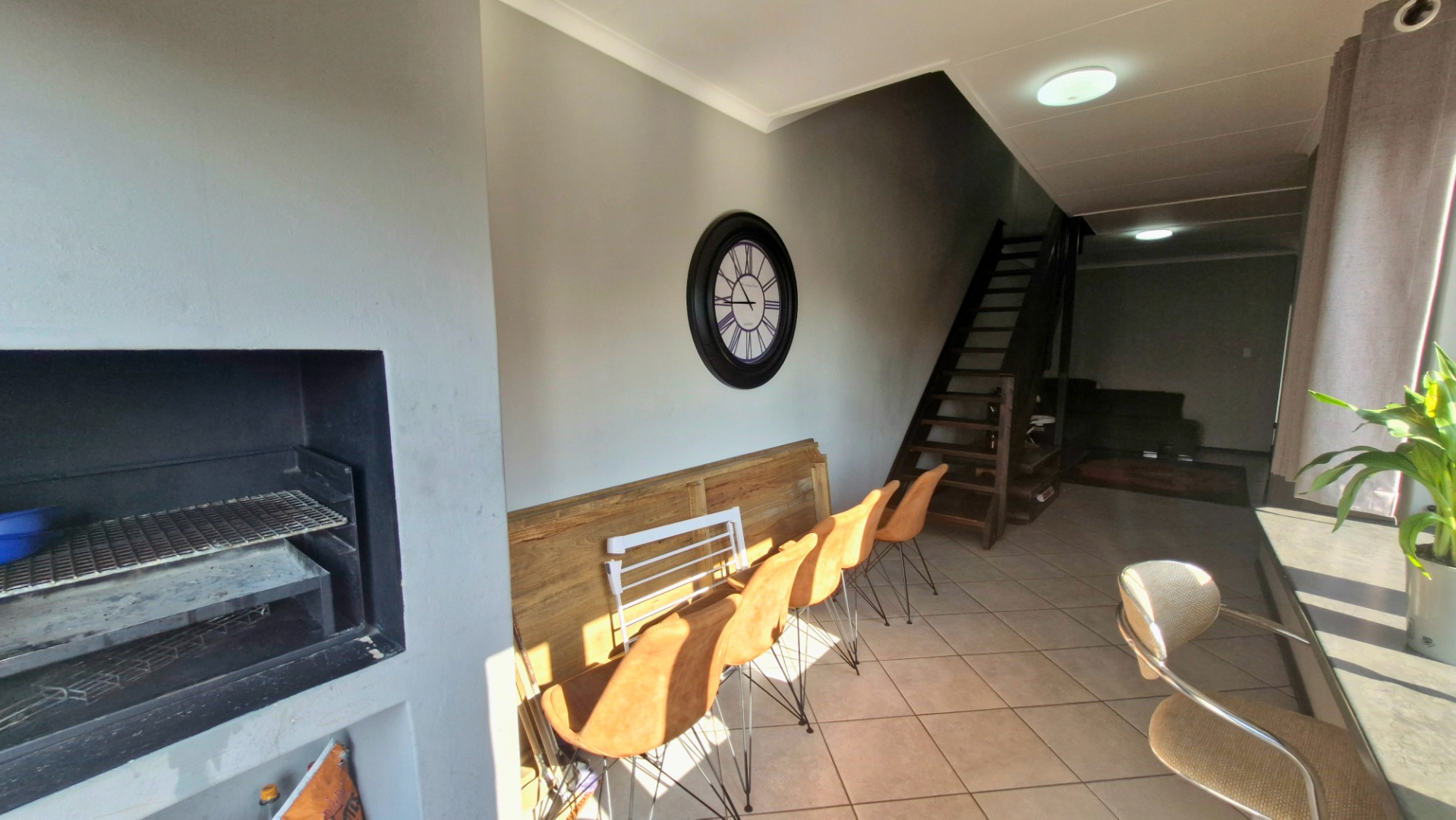 The lounge extends into a private patio and built-in braai area — perfect for entertaining.