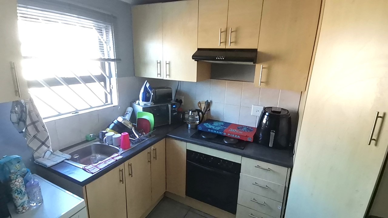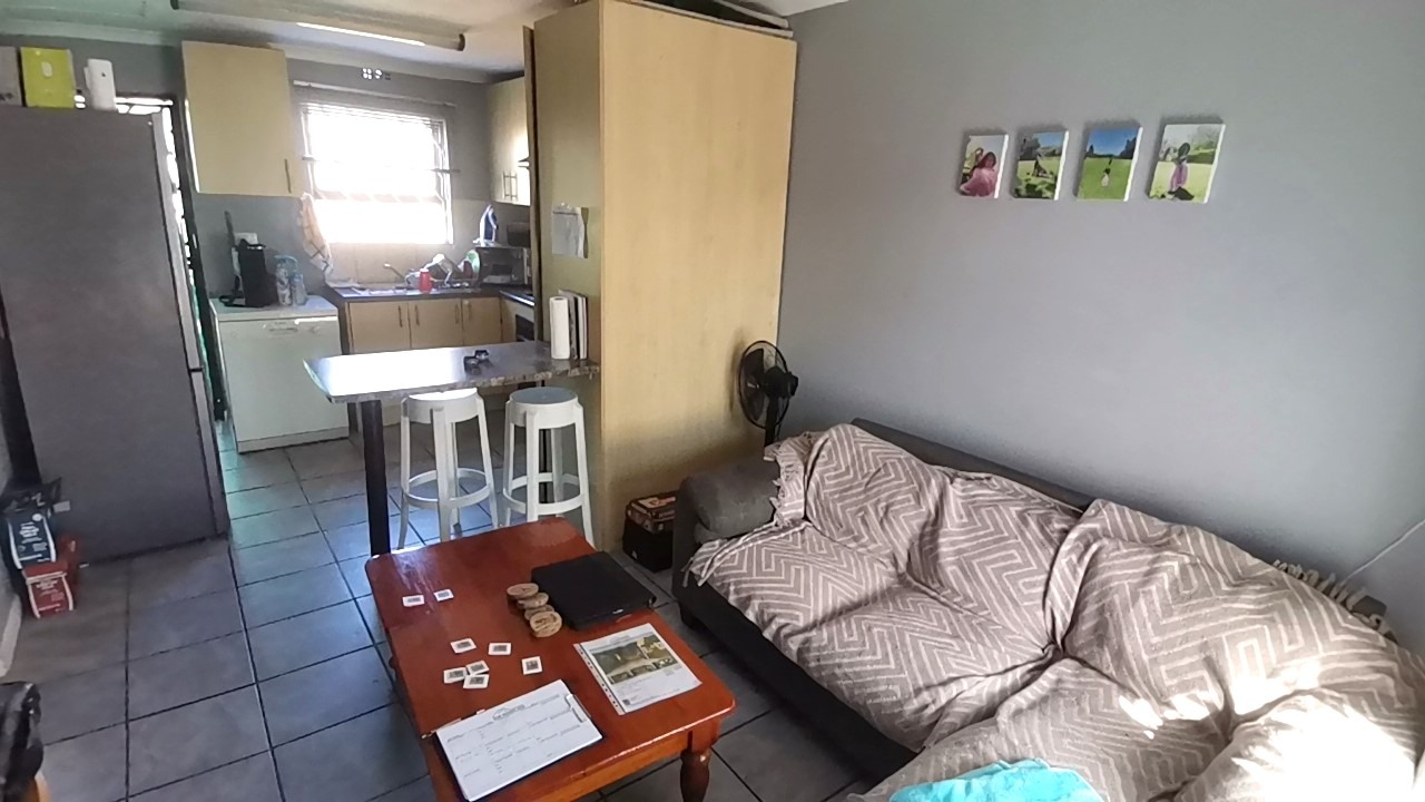 Discover this charming two-bedroom, one-bathroom residential property nestled in the established Bardale Village, Blue Downs. This home presents an excellent opportunity for first-time buyers or small families seeking a comfortable and secure living space in South Africa. The property boasts a well-maintained exterior with a light-colored facade and a welcoming dark green front door, enhanced by a mature tree providing natural shade and curb appeal. A paved driveway leads to a convenient covered carport, offering secure parking for two vehicles. Security is a priority, with visible burglar bars on windows and a camera system providing peace of mind. Inside, the layout features an open-plan design, seamlessly connecting the functional kitchen to the living area. The kitchen is equipped with light wooden cabinetry, dark countertops, an integrated oven and hob with an extractor fan, and benefits from ample natural light. Tiled flooring extends throughout the living spaces, ensuring easy maintenance and durability. The compact living area provides a cozy space for relaxation. Accommodation includes two comfortable bedrooms, both featuring tiled flooring and good natural light. The main bedroom offers neutral grey walls and crown molding, while the second bedroom is versatile, ideal for children or as a guest room. The single bathroom is compact and functional, with light grey tiled walls and floor, a wall-mounted sink, and a shower head. It also cleverly integrates a laundry space with a washing machine hookup. Located in a suburban complex, this property offers a practical and accessible lifestyle. Bardale Village is a well-regarded community within Blue Downs, providing residents with a convenient base for daily living. This home combines essential features with a secure environment, making it a smart choice for those looking to enter the property market. Key Features: * Two bedrooms, one bathroom * Open-plan kitchen and living area * Paved driveway with covered carport for two vehicles * Security-barred windows and visible camera * Tiled flooring throughout * Integrated kitchen appliances (oven, hob, extractor) * Laundry space within the bathroom