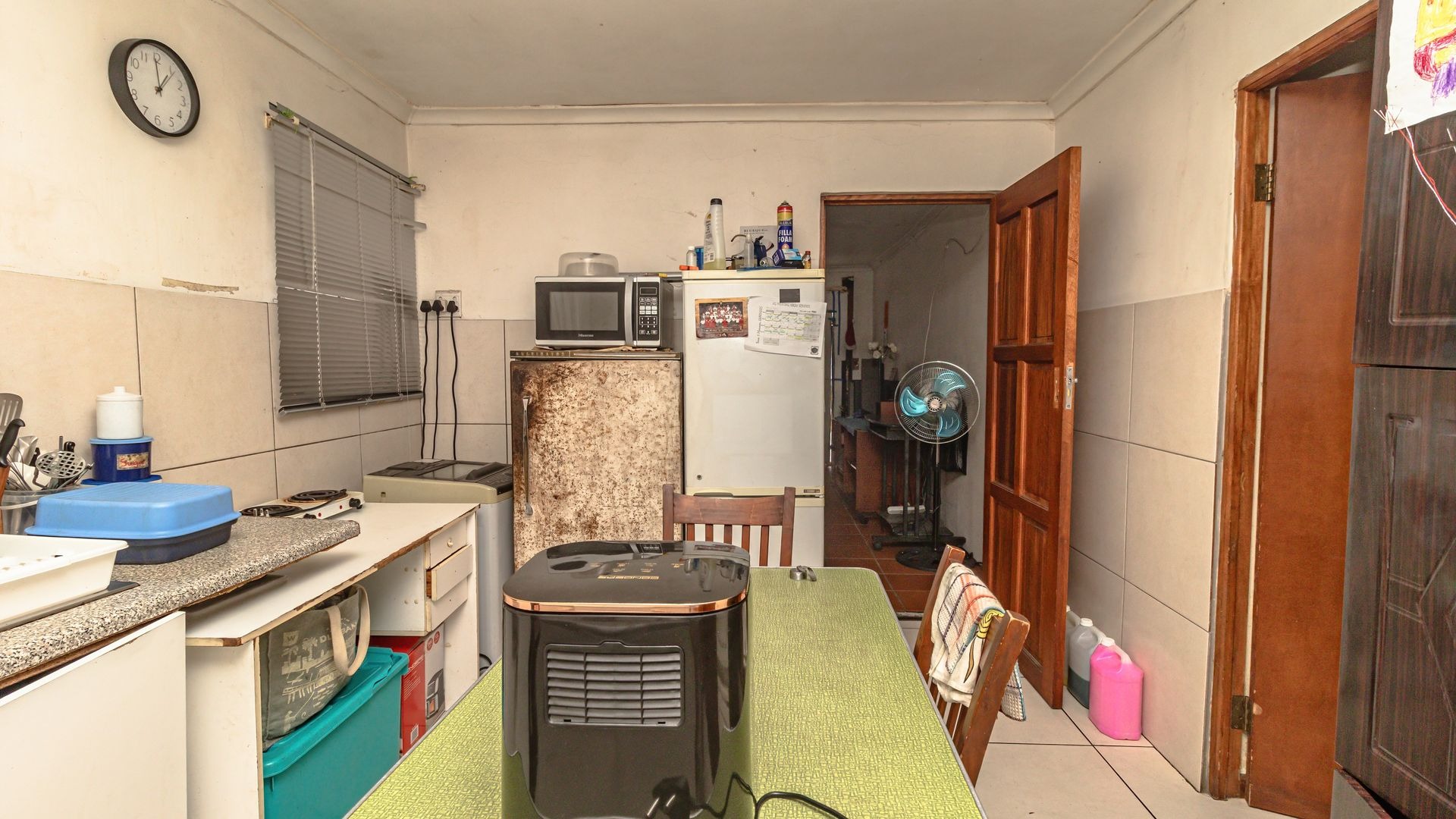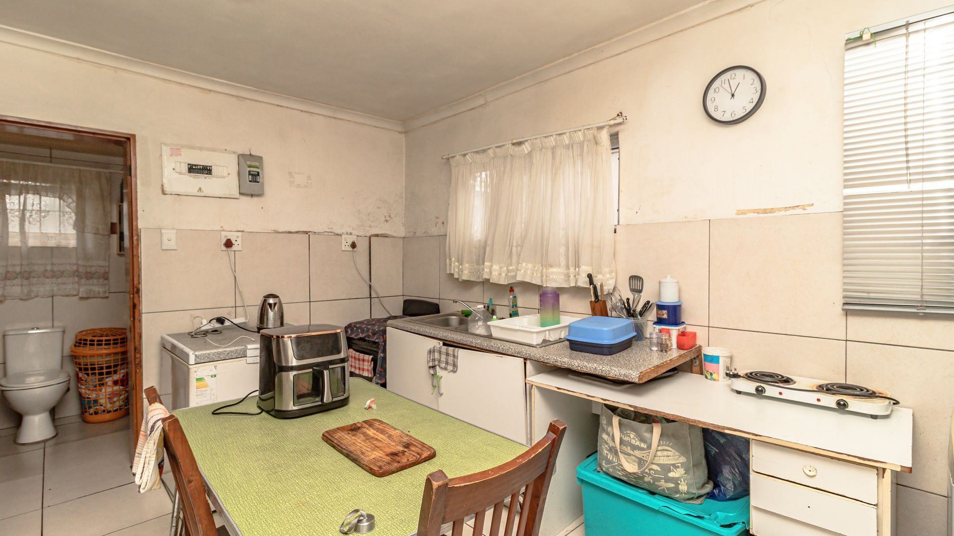The main house boasts four generously sized bedrooms, all fitted with built-in cupboards, and two well-maintained bathrooms to comfortably accommodate a growing family. The expansive lounge area is the heart of the home, featuring a cosy fireplace—perfect for relaxed evenings—while a separate dining room provides an ideal space for formal meals and entertaining.