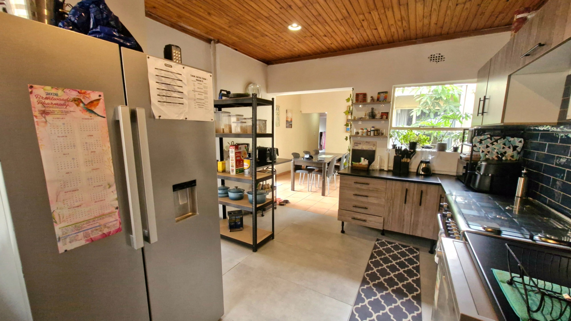 The inviting lounge is characterised by stunning high pine ceilings, creating a wonderful sense of volume and warmth. It overlooks a private front garden, immaculately maintained by the groundskeeper, offering tranquil outdoor views and added peace of mind.