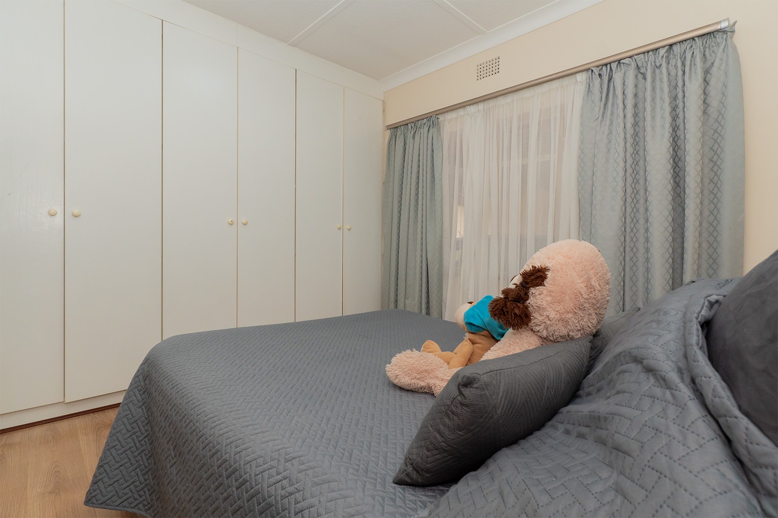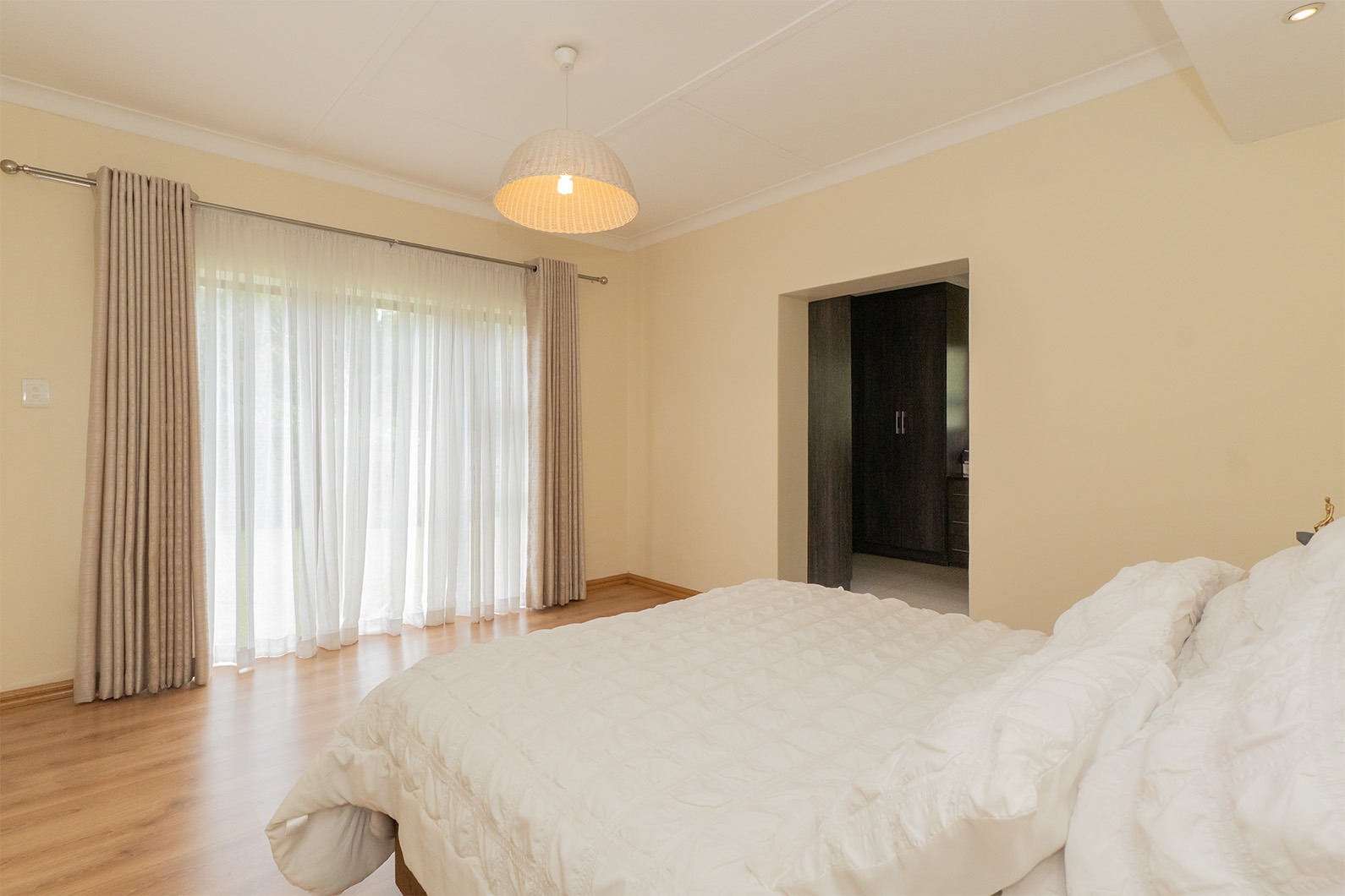 The main bedroom is a private retreat, featuring a walk-in closet and a well-appointed en-suite bathroom. The remaining bedrooms are well-sized and serviced by a second bathroom.