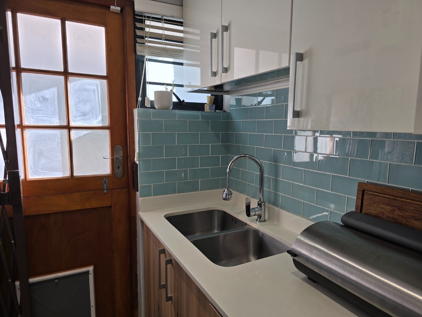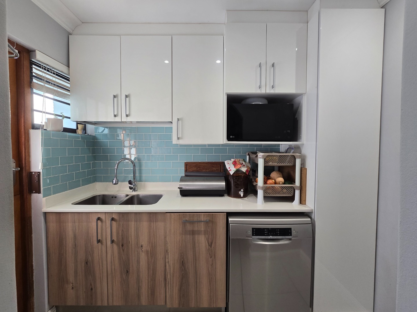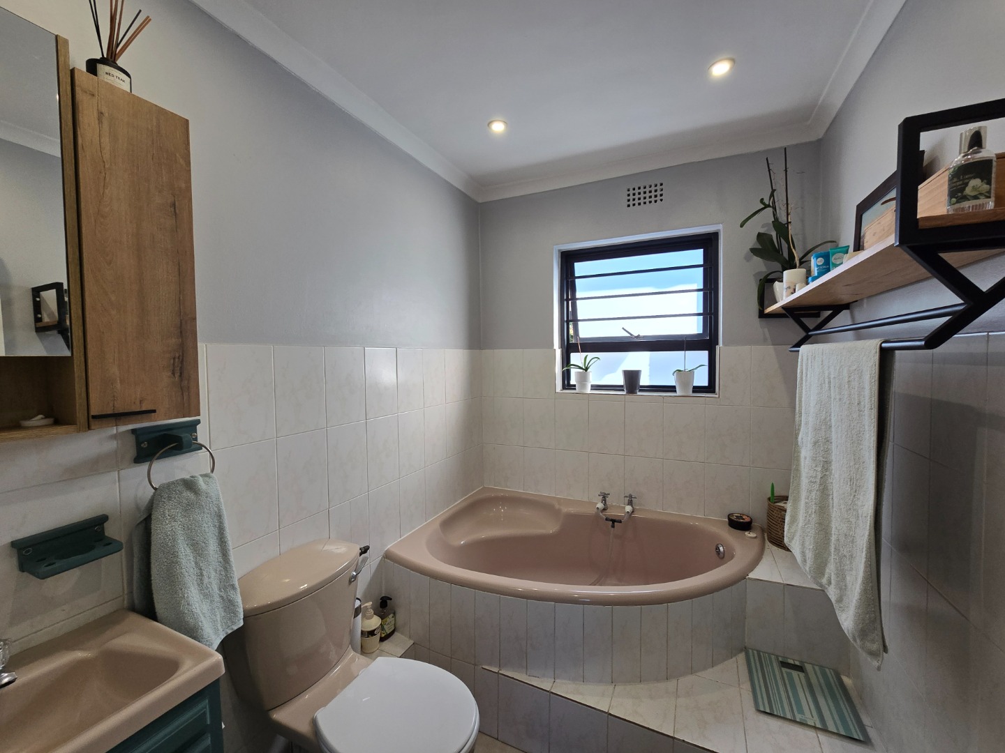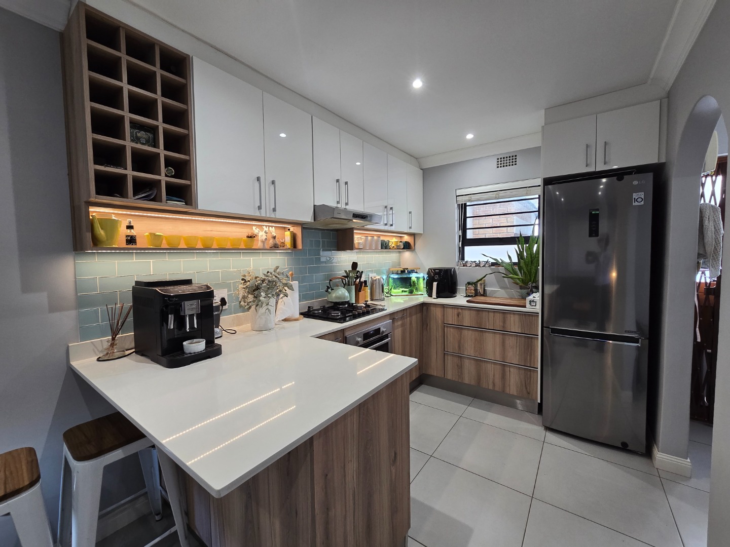 This unique home, offers an OPEN PLAN, beautiful modern and renovated Kitchen. This stylish Kitchen, features a built in gas hob, Ceaser stone worktops and undershelve lighting, that adds to a soft, but warm glow on the worktops and in the Kitchen area... From the Kitchen, a seamless flow into a Living/TV Room, complete with Blinds on both windows and the comfort of an Airconditioner! A separate Laundry/Scullery is conveniently tucked just off the Kitchen, practicality adding to this delightful space! The downlights in the Kitchen and Living area, enhance a calm and and contempary atmosphere....