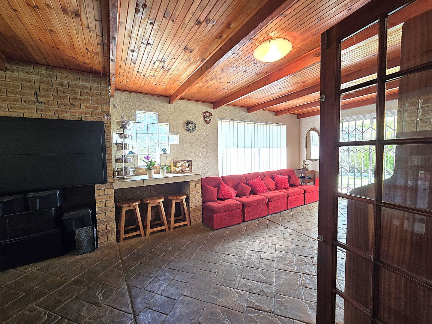 This dwelling offers OPEN PLAN living from the Kitchen with ample cupboard space, and separate scullery, with an effortless flow to the Dining Room, into a spacious TV Room! From the TV Room, flowing into the Braai Room!