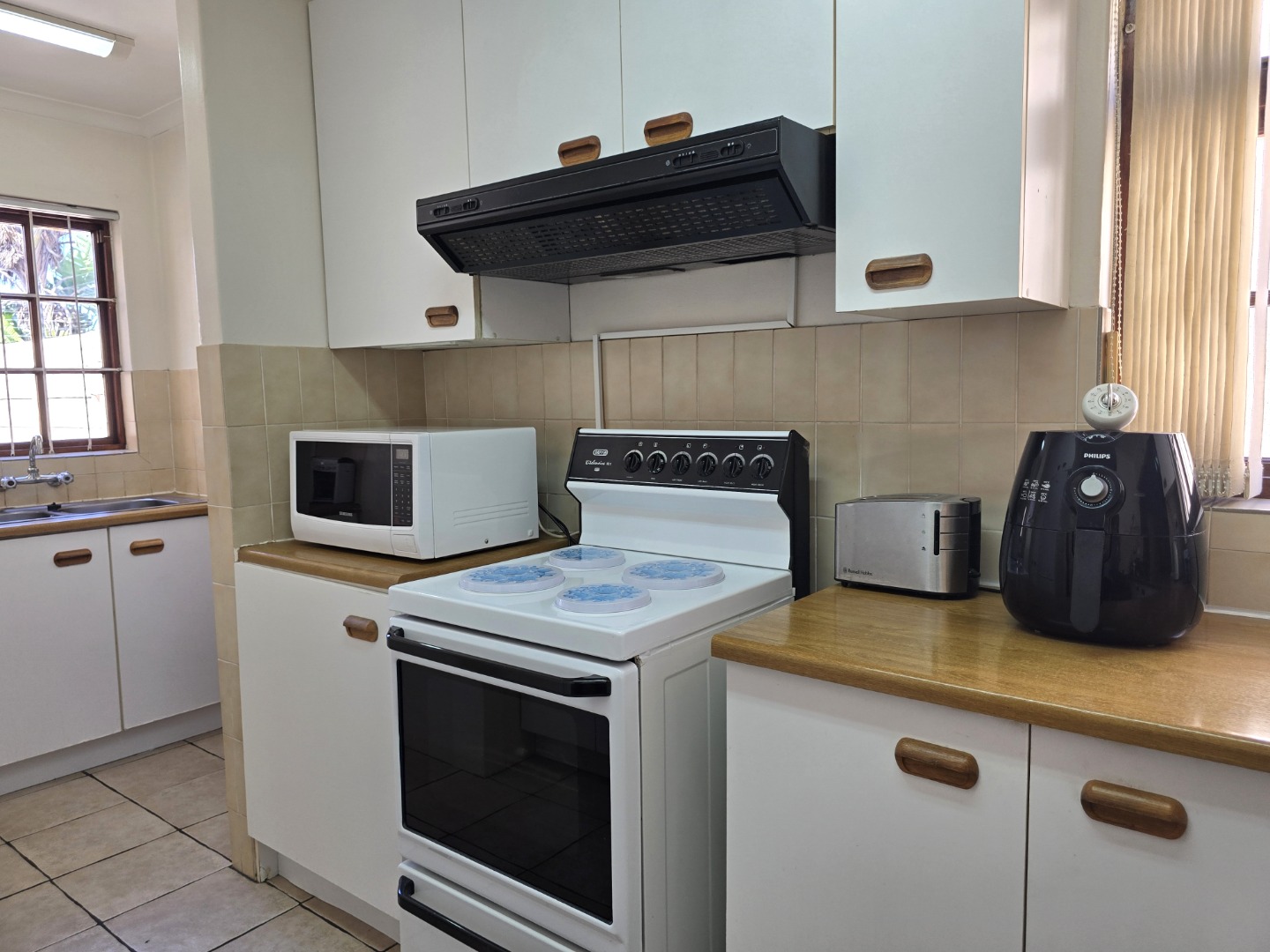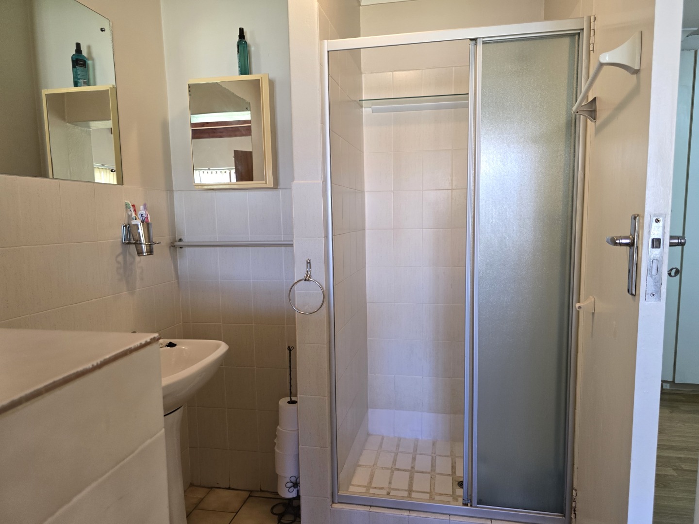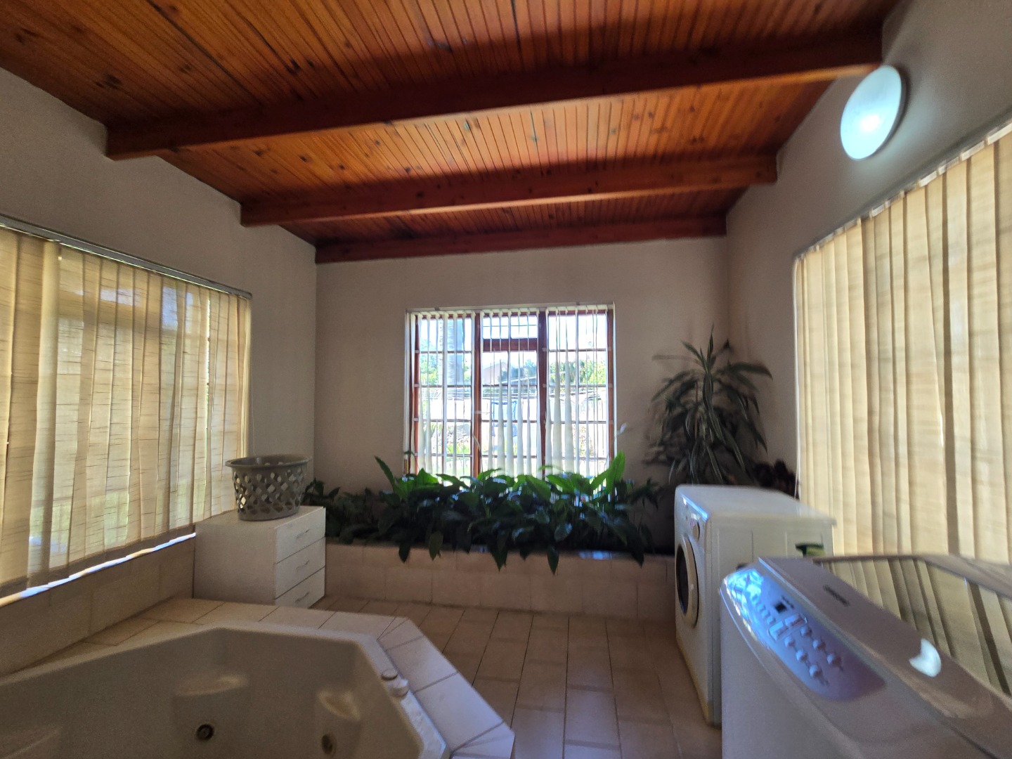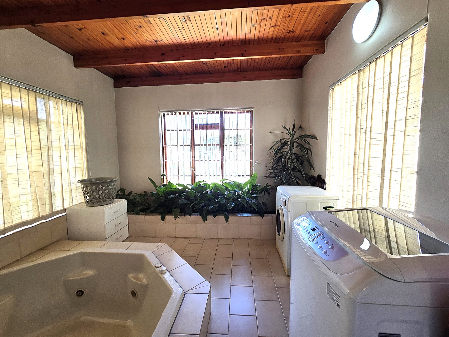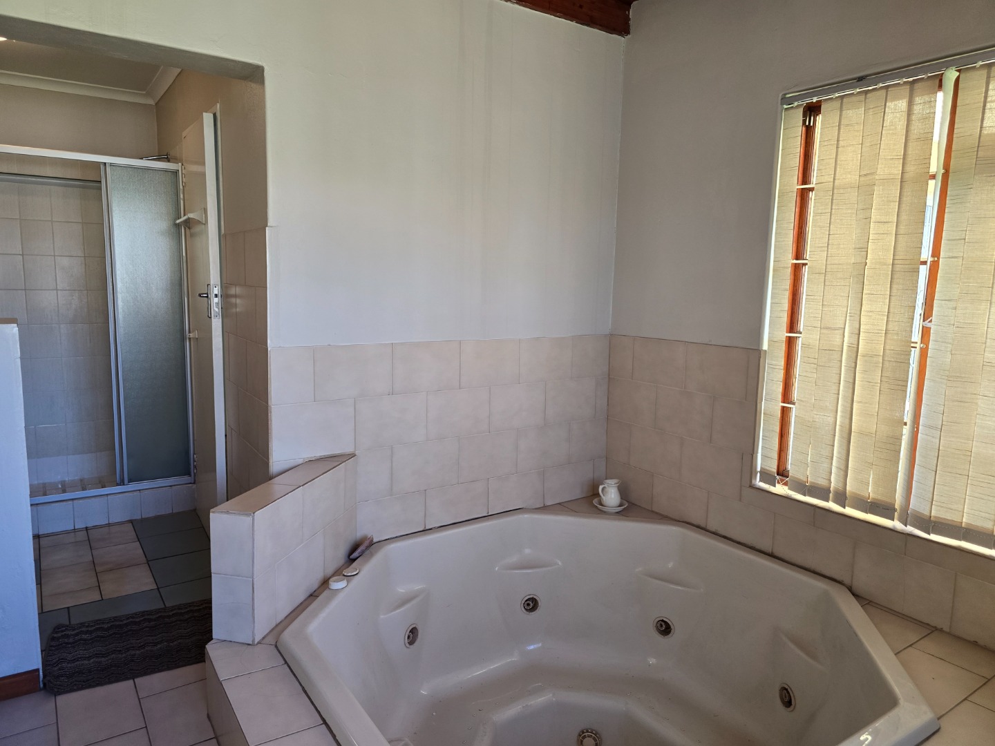 Featuring 3 Bedrooms with laminated flooring and fitted cupboards! The neat family Bathroom is fitted with a Bath (Shower in the Bath) as well as a Basin and Toilet! The Main Bedroom has an on-suit Bathroom (Shower, Basin and Toilet) leading to an extra room, currently with a Jacuzzi (not being used recently) – or to be utilised to your specific needs (study, hobby room,etc)!