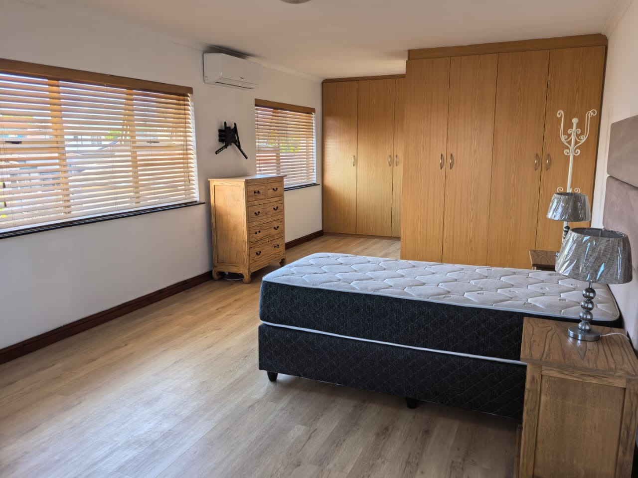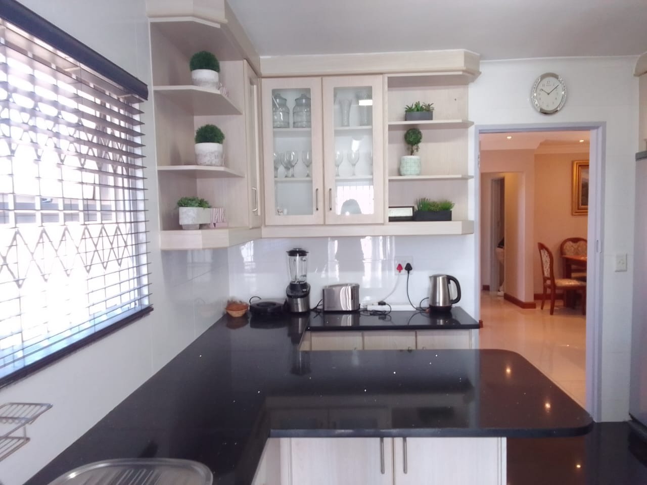 Discover this inviting 4-bedroom, 3-bathroom family home located in the desirable suburban area of Tygerdal, Goodwood. The property presents a well-maintained exterior with a light-coloured facade and tiled roof, offering excellent kerb appeal. A paved driveway provides ample off-street parking for up to six vehicles, complemented by a double attached garage for secure storage. Step inside to an open-plan interior designed for comfortable living and entertaining. The spacious layout features consistent light-coloured tiled flooring throughout, enhancing the bright atmosphere. A highlight is the modern kitchen, equipped with light-coloured cabinetry, sleek black speckled countertops, a white tiled backsplash, and integrated appliances including a built-in oven, hob, and extractor fan. This functional space seamlessly connects to the dining area, boasting a decorative stacked stone veneer accent wall and elegant chandelier lighting. The residence offers four generously sized bedrooms and three well-appointed bathrooms, providing ample accommodation for a family. Each space is designed for comfort and practicality. A dedicated utility area further enhances the home's functionality, ideal for laundry. Outside, the property features a refreshing swimming pool, perfect for relaxation and entertaining during warmer months, set within a private garden space. Security is a key consideration, with visible security gates and window bars providing enhanced peace of mind for residents. This suburban home offers a secure and comfortable lifestyle. Key Features: * 4 Bedrooms, 3 Bathrooms * Modern Kitchen with Built-in Appliances * Open-Plan Living and Dining Areas * Private Swimming Pool * Double Attached Garage * Ample Parking for 6 Vehicles * Enhanced Security Features * Dedicated Laundry/Utility Area
