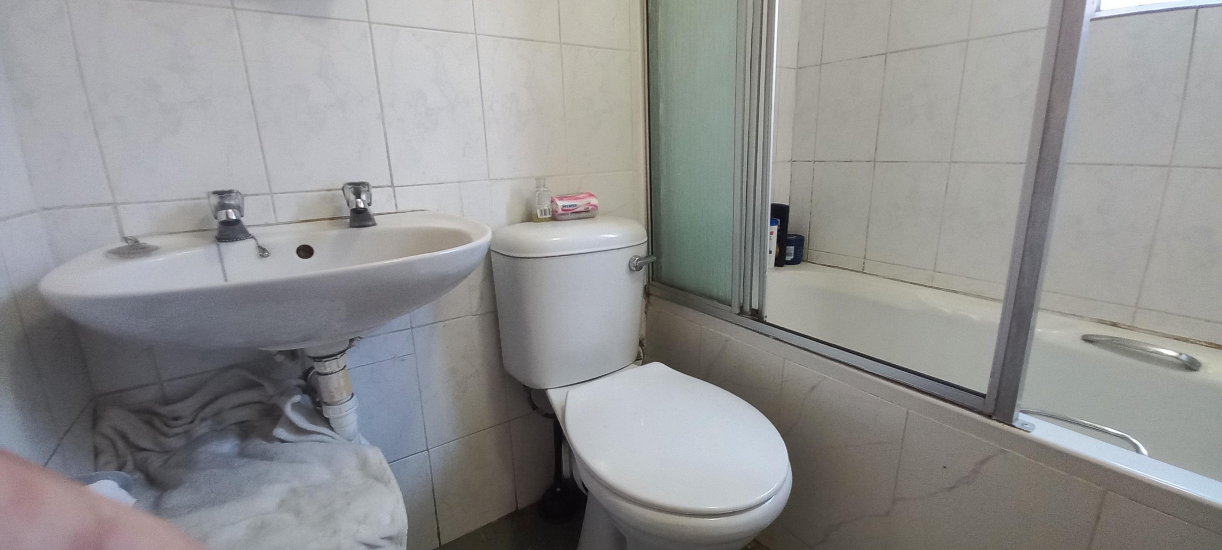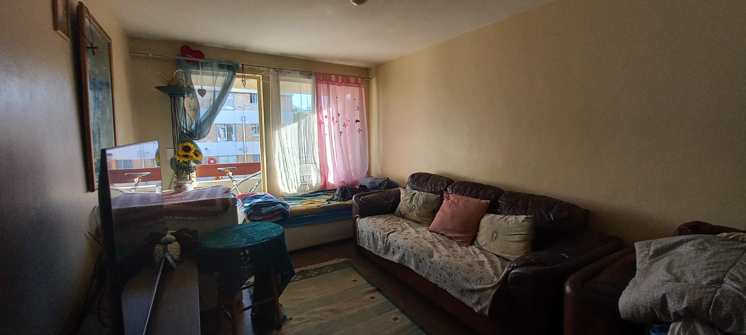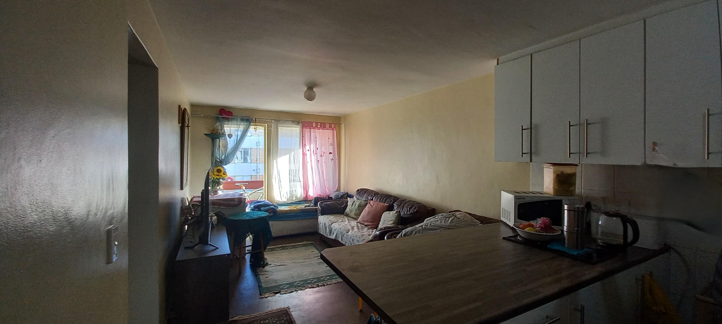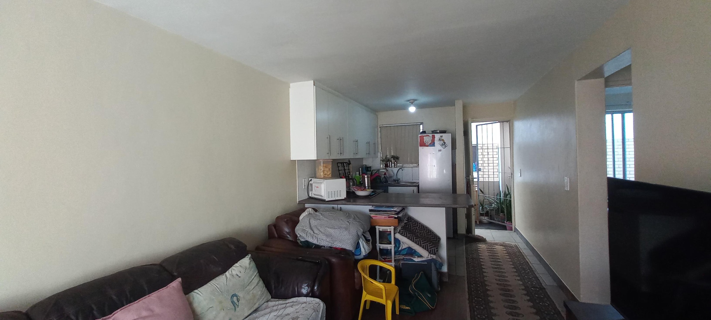 OPEN PLAN LOUNGE: The tiled lounge has a door