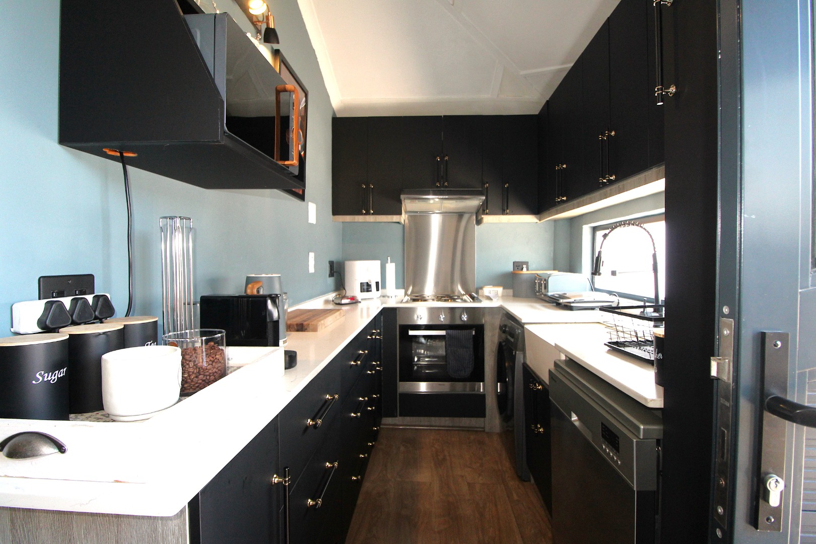 Modern kitchen with washing machine and dishwasher connection