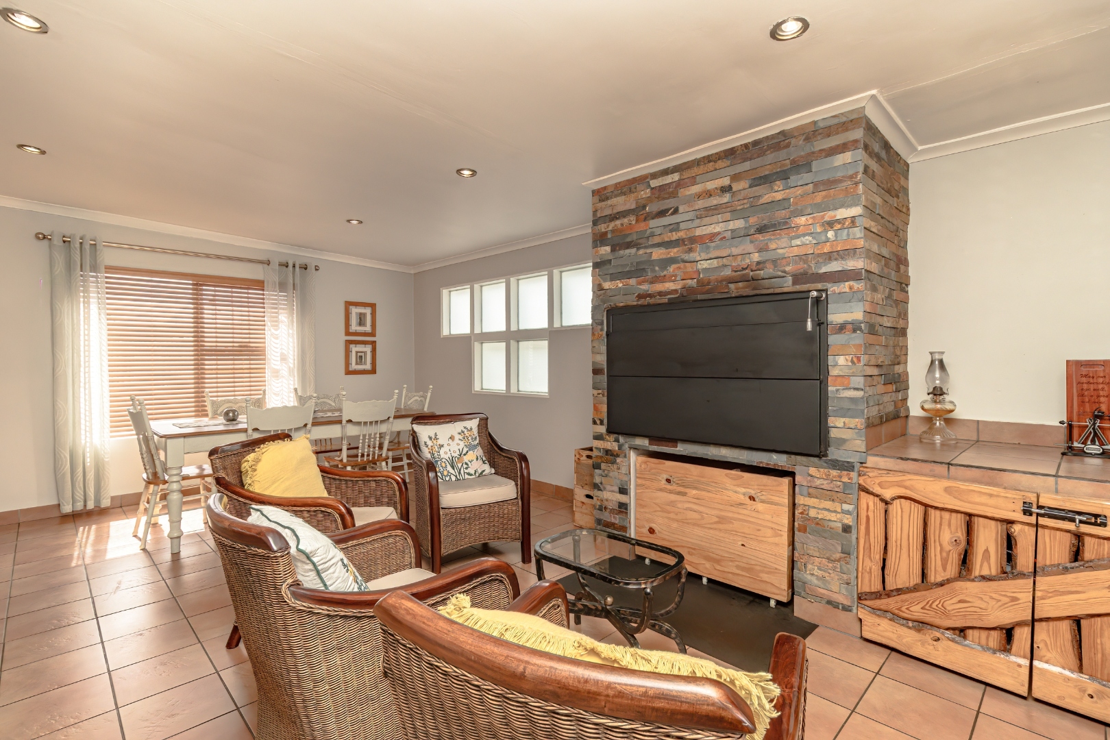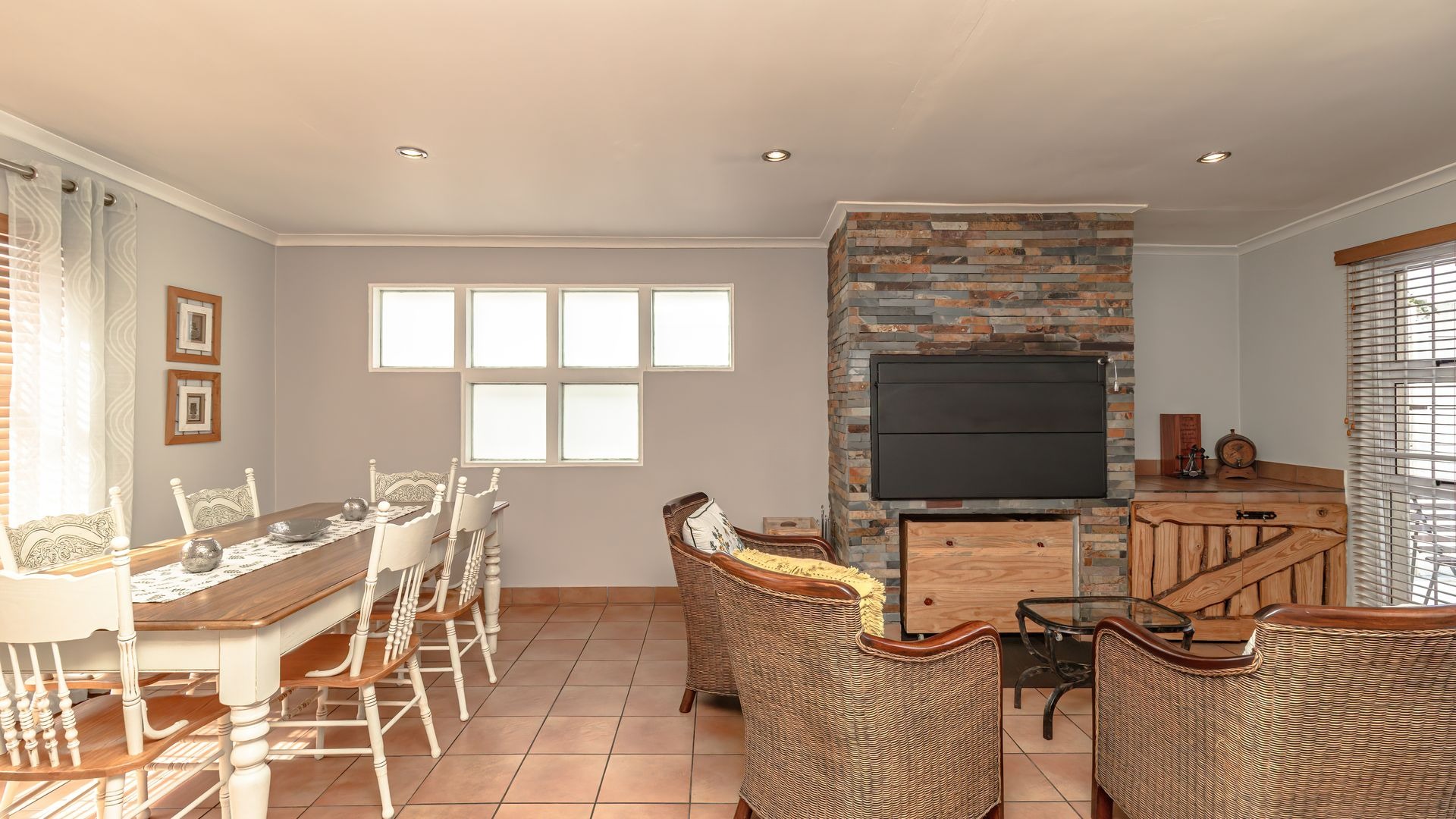 The entertainment area is fitted with an indoor braai, perfect for those wet rainy days! This property come with an automated Double garage that’s been fitted with plumbing and power points for your washing machine and tumble dryer!