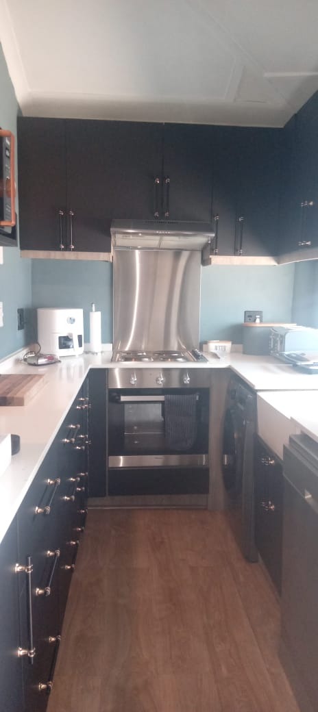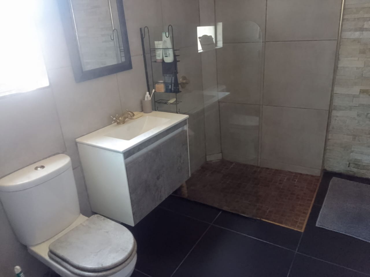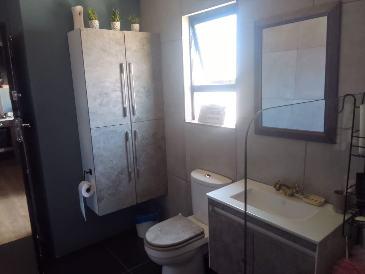 Discover this contemporary residential property for sale in the desirable suburban enclave of Glenlilly, Parow, South Africa. This home presents a striking kerb appeal, blending modern design elements with practical features. The exterior showcases a sophisticated mix of dark-framed glass doors and windows, textured plaster walls, and distinctive rustic stone cladding, creating a unique aesthetic. An integrated mailbox adds to the clean frontage, while security bars on windows provide enhanced peace of mind. Step inside to find spacious living areas designed for comfort and modern living. One inviting space features appealing wooden-look flooring, high ceilings with decorative cornices, and ample natural light, perfect for relaxation. Another generous living area boasts a large brown sectional sofa, neutral wall tones, and a unique woven light fixture, offering versatile space for family and entertaining. The compact, U-shaped kitchen is a highlight, equipped with sleek dark grey cabinetry, light countertops, and integrated stainless steel appliances including an oven, hob, extractor hood, and dishwasher, all illuminated by a window above the sink. The residence comprises three comfortable bedrooms and two well-appointed bathrooms. The bathrooms feature a modern floating sink and toilet, complemented by light grey tiled walls, an exposed brick accent, and earthy-toned floor tiles. Natural light enhances the space, and an accessibility grab bar adds convenience. A significant advantage of this property is its exceptional parking capacity, offering four dedicated garages alongside eight additional parking spaces, catering to multiple vehicles or guests. Situated on a generous 520 sqm erf, this home provides ample outdoor potential. Located in this established suburban setting, the property offers the benefits of convenient access to local amenities and transport links within the wider Parow area. Key Features: * 3 Bedrooms, 2 Bathrooms * Modern U-shaped kitchen with integrated appliances * Spacious living areas with varied finishes * 4 Garages plus 8 additional parking spaces * Contemporary architectural design with stone cladding * Security bars on windows * 520 sqm erf size