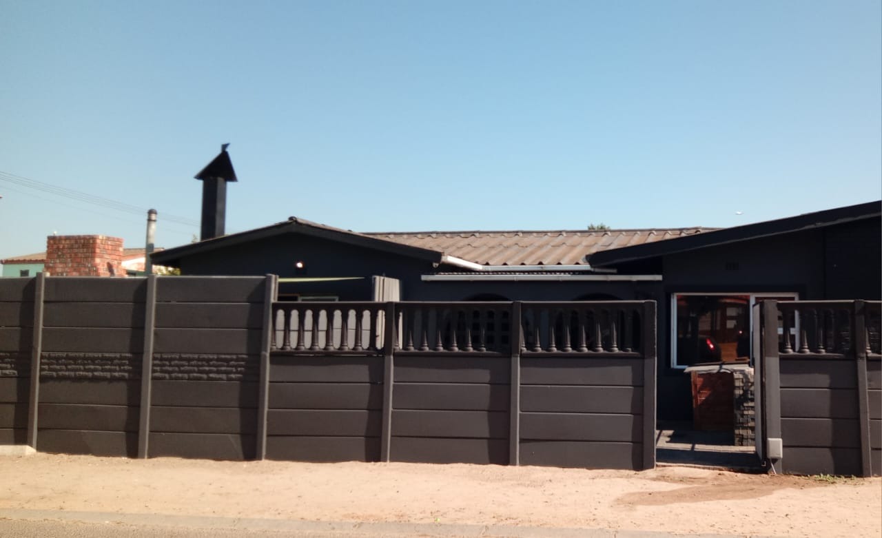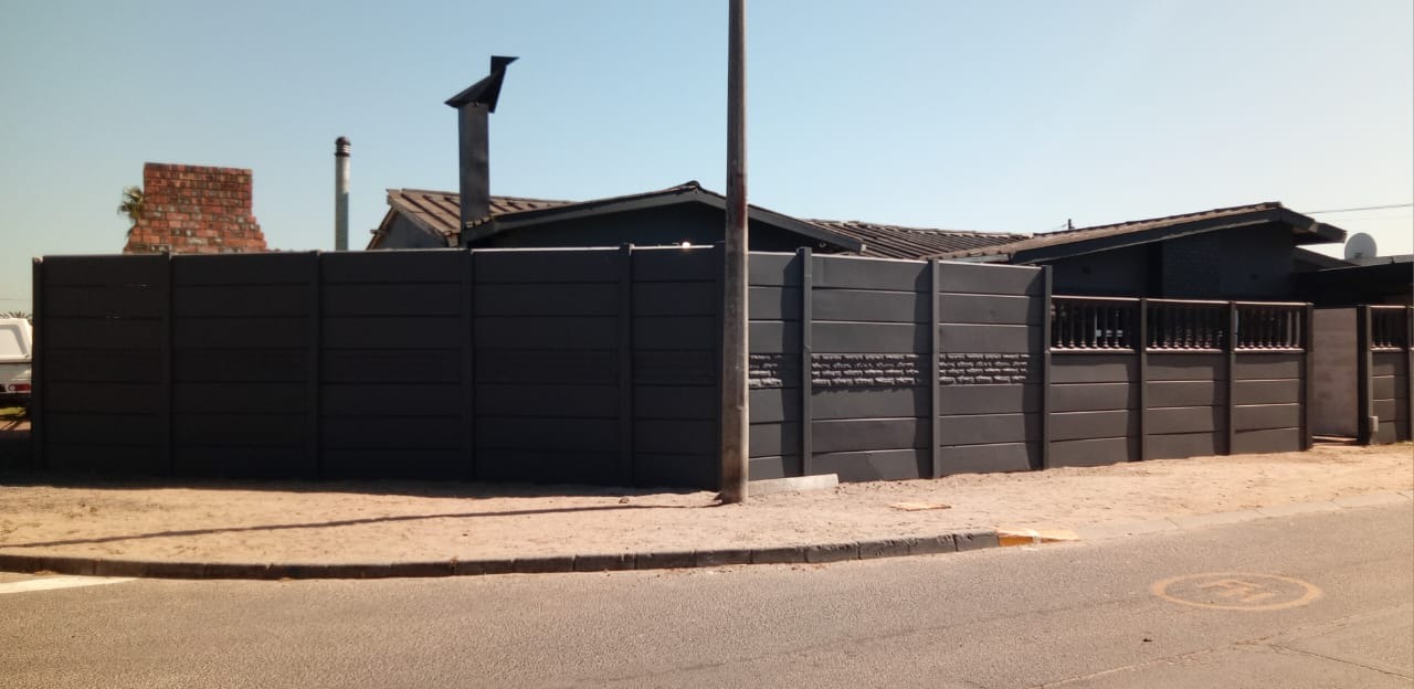 Discover this inviting 4-bedroom, 2-bathroom residence located in the established suburban area of Uitsig. The property immediately presents a secure and modern aesthetic with its dark-painted exterior and a high precast concrete fence, offering both privacy and peace of mind on a corner plot.