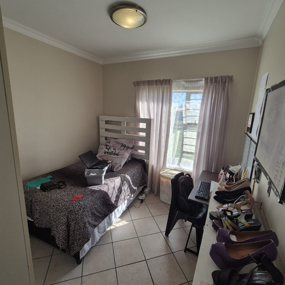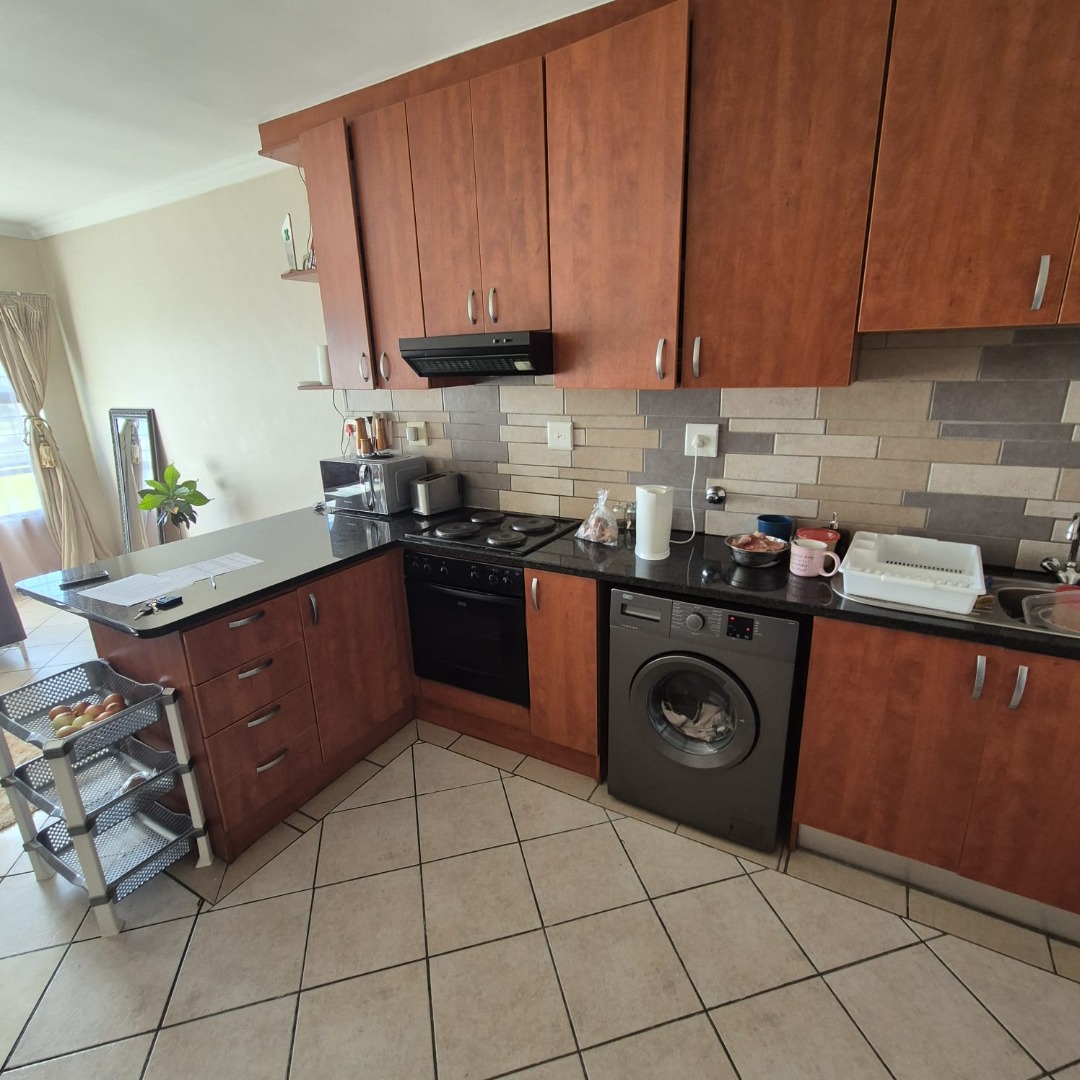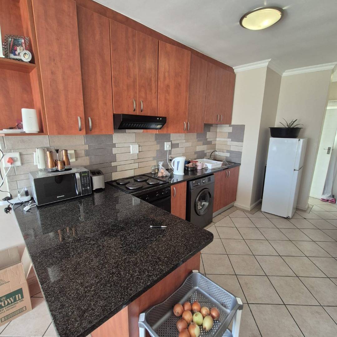 This comfortable 2-bedroom, 1-bathroom apartment offers 55 square meters of well-appointed living space in Klipkop, Parow. The inviting lounge area features neutral walls, durable tiled flooring, and ample natural light, creating a versatile environment for relaxation or entertaining. The modern kitchen is a highlight, boasting stylish wood-toned cabinetry, dark granite countertops, and a practical tiled backsplash. It comes equipped with a built-in oven, hob, extractor fan.