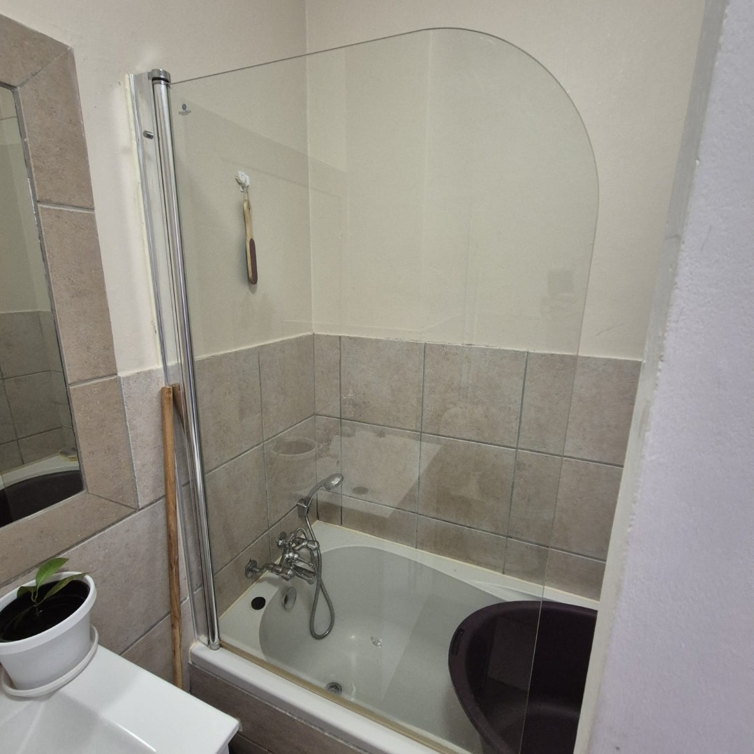 The two bedrooms are designed for comfort, each featuring tiled flooring and good natural light. The single bathroom is efficiently laid out, including a bathtub with an overhead shower, a glass screen, and tiled walls for easy maintenance. A vanity with an integrated sink and storage cabinet, alongside a modern toilet, completes this functional space.
