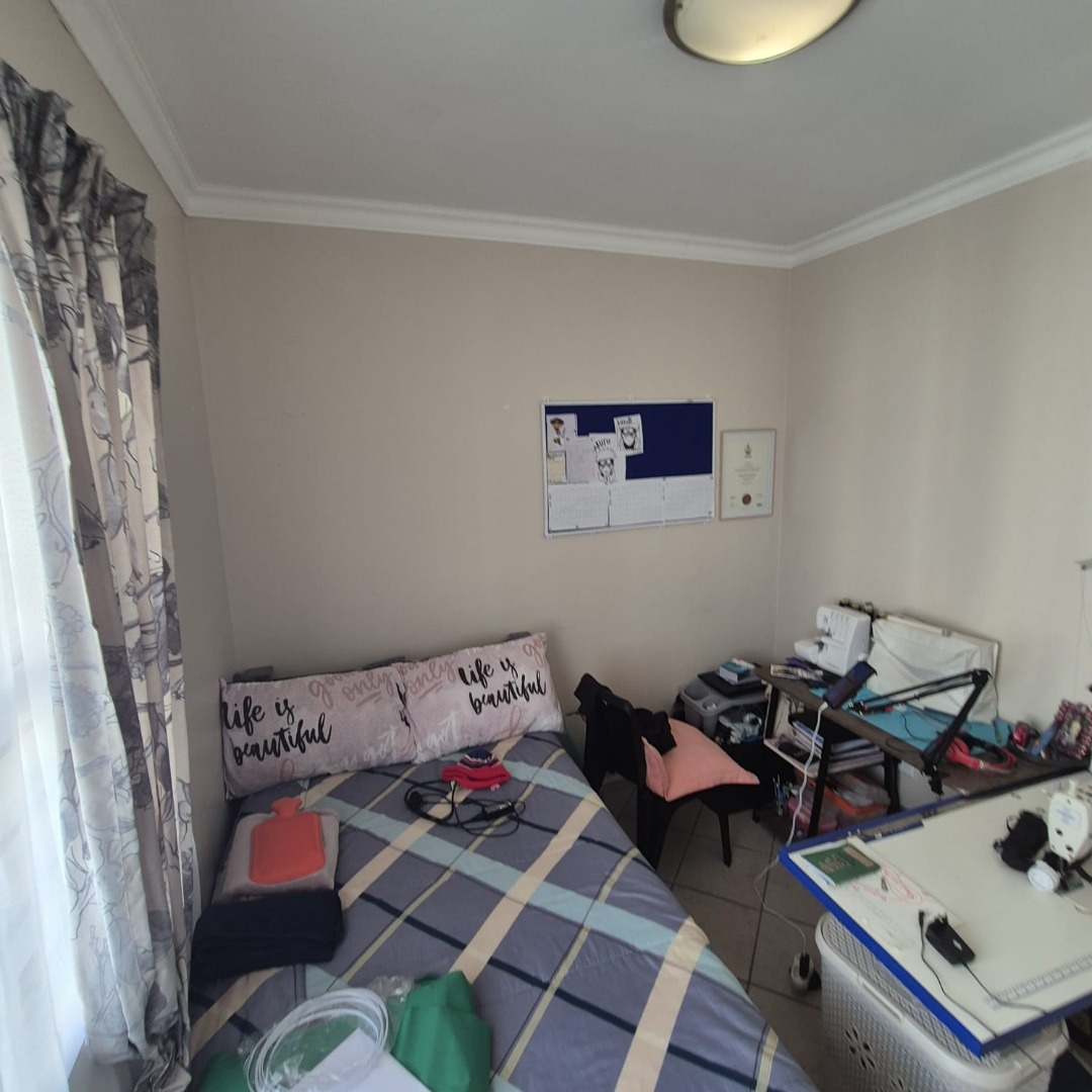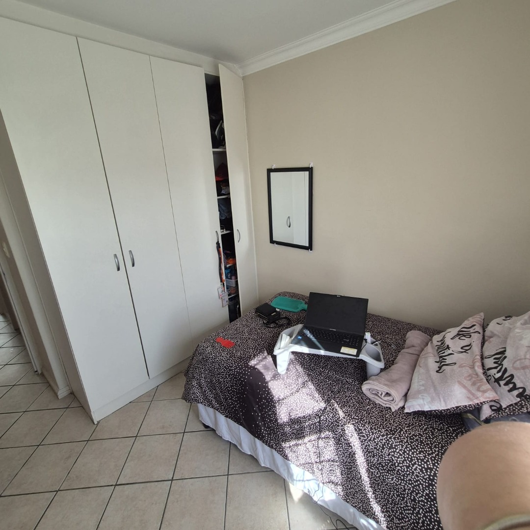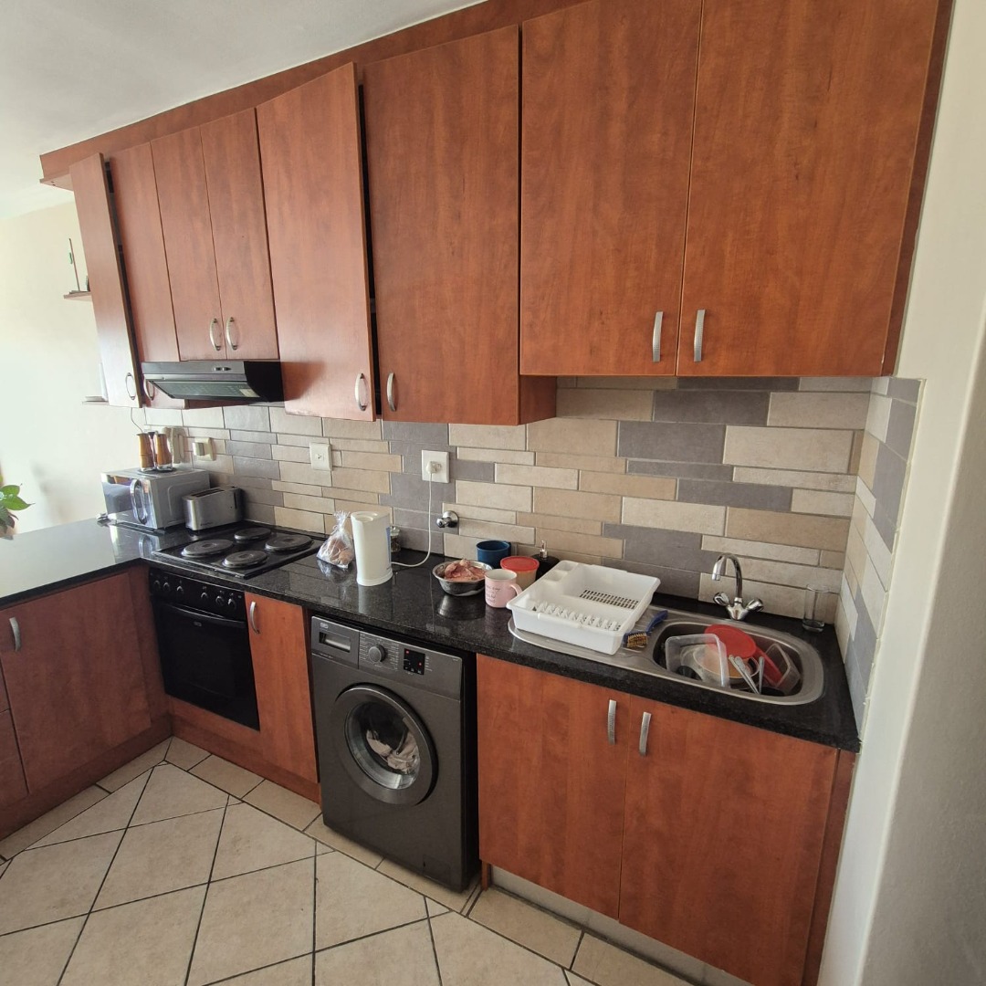 This comfortable 2-bedroom, 1-bathroom apartment offers 55 square meters of well-appointed living space in Klipkop, Parow. The inviting lounge area features neutral walls, durable tiled flooring, and ample natural light, creating a versatile environment for relaxation or entertaining. The modern kitchen is a highlight, boasting stylish wood-toned cabinetry, dark granite countertops, and a practical tiled backsplash. It comes equipped with a built-in oven, hob, extractor fan.